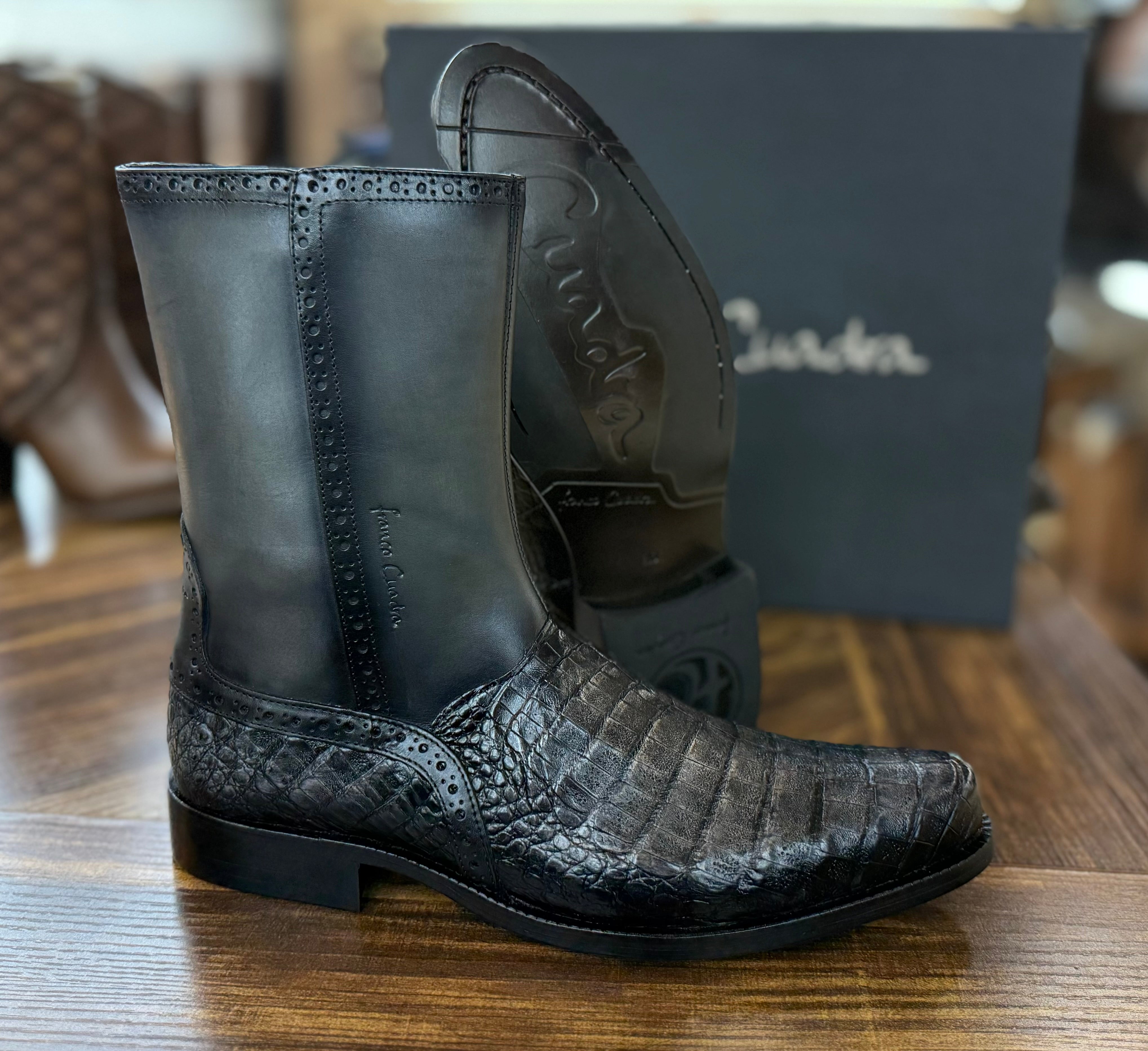 Cuadra Men’s Atlantic Black Caiman Zipper Round Toe