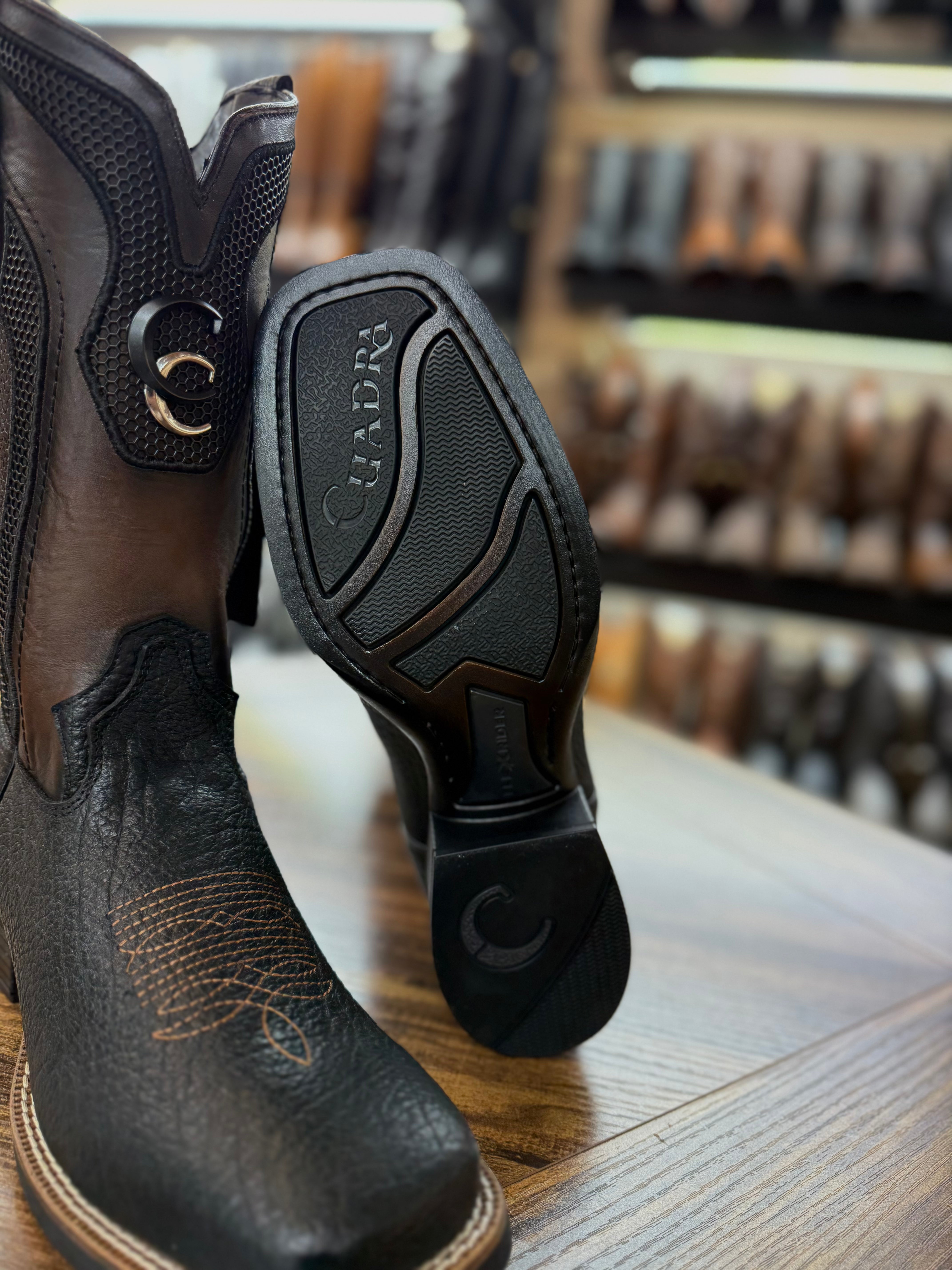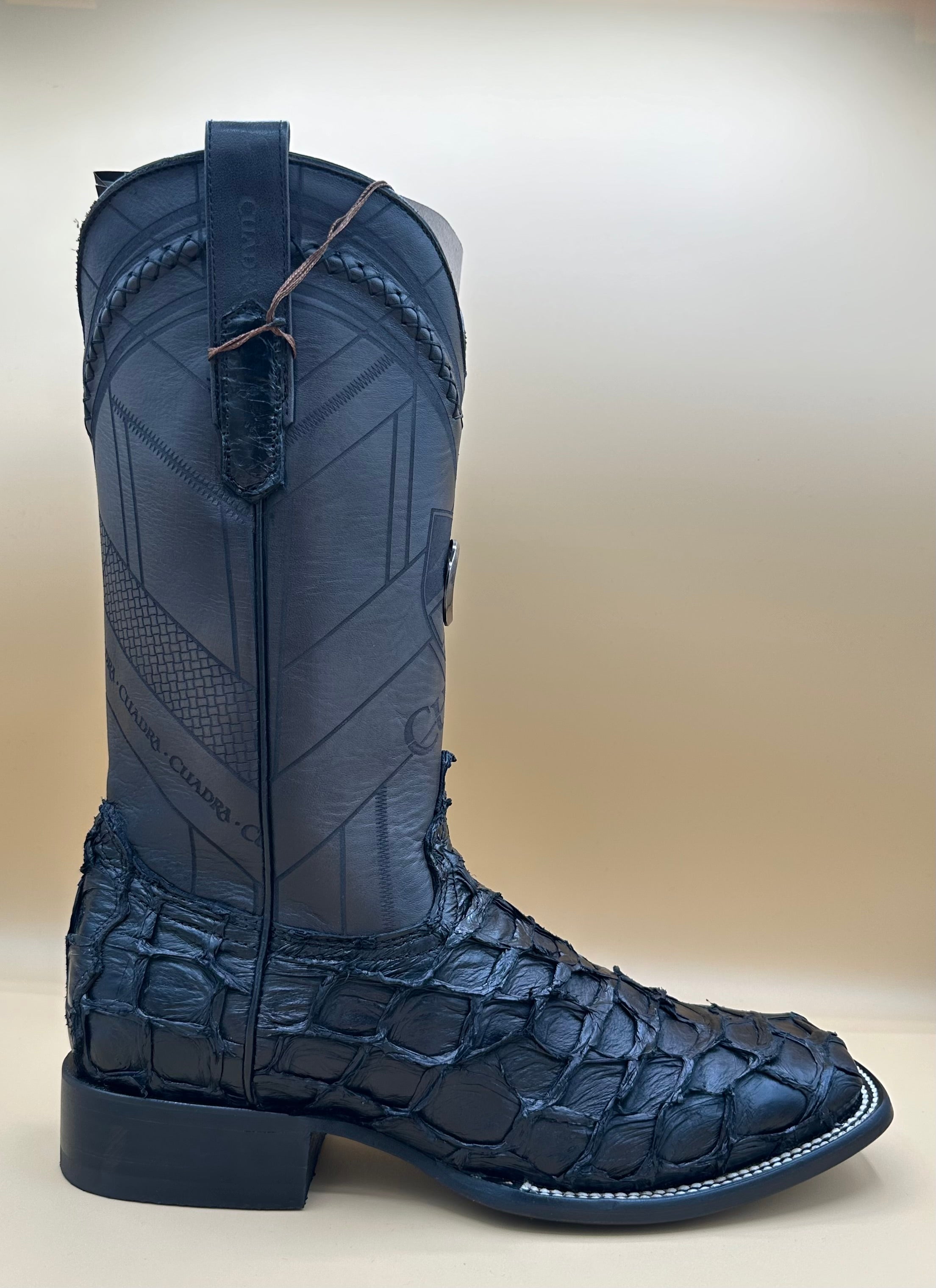 Cuadra Men’s Black Glazed Pirarucu Laser & Woven Square Toe Boots -