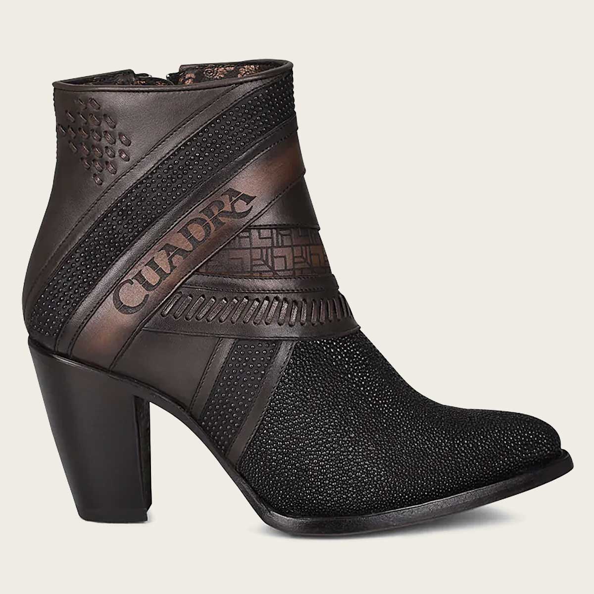 Cuadra Women's Black Stingray Laser & Woven & Zipper Round Toe