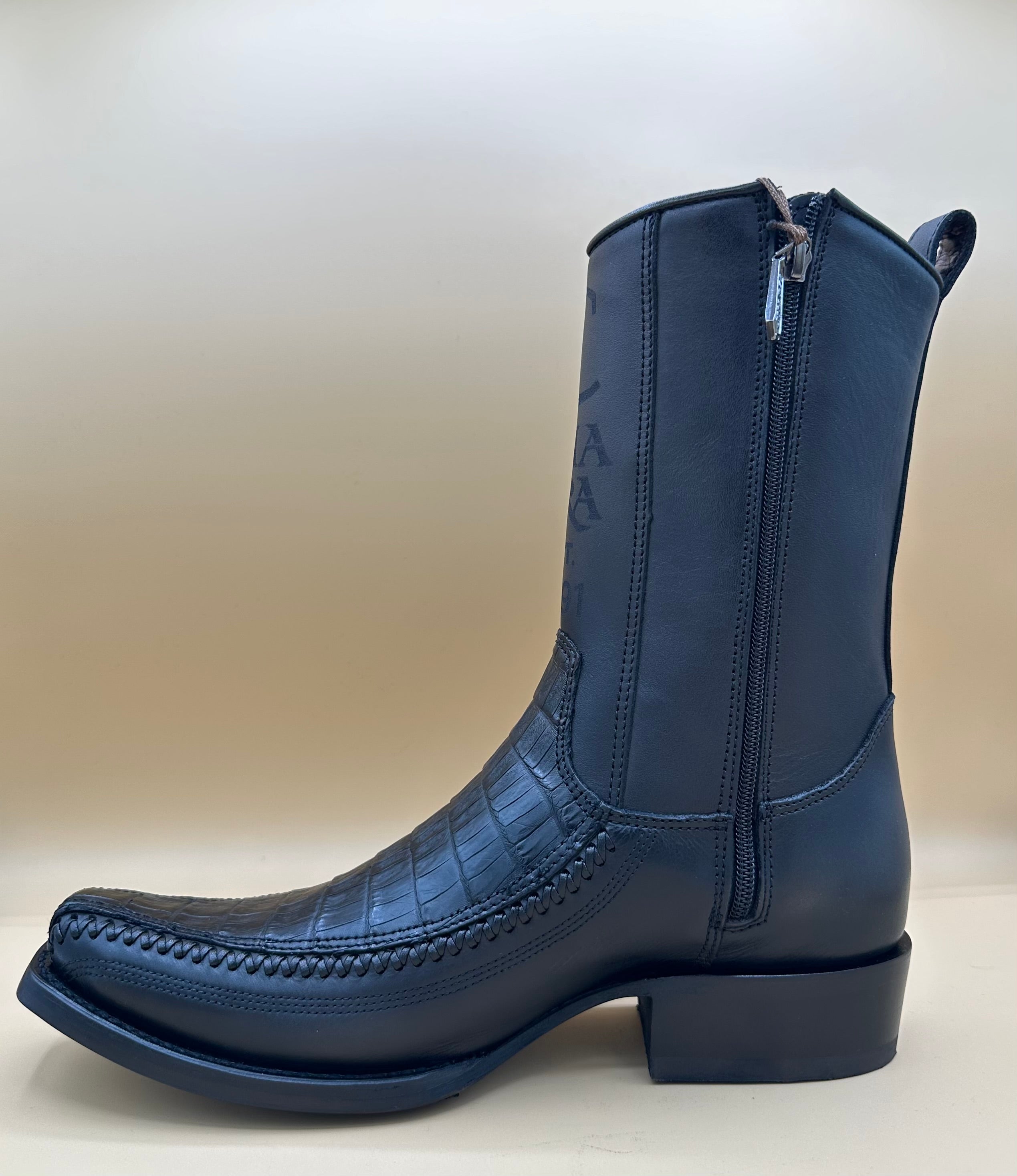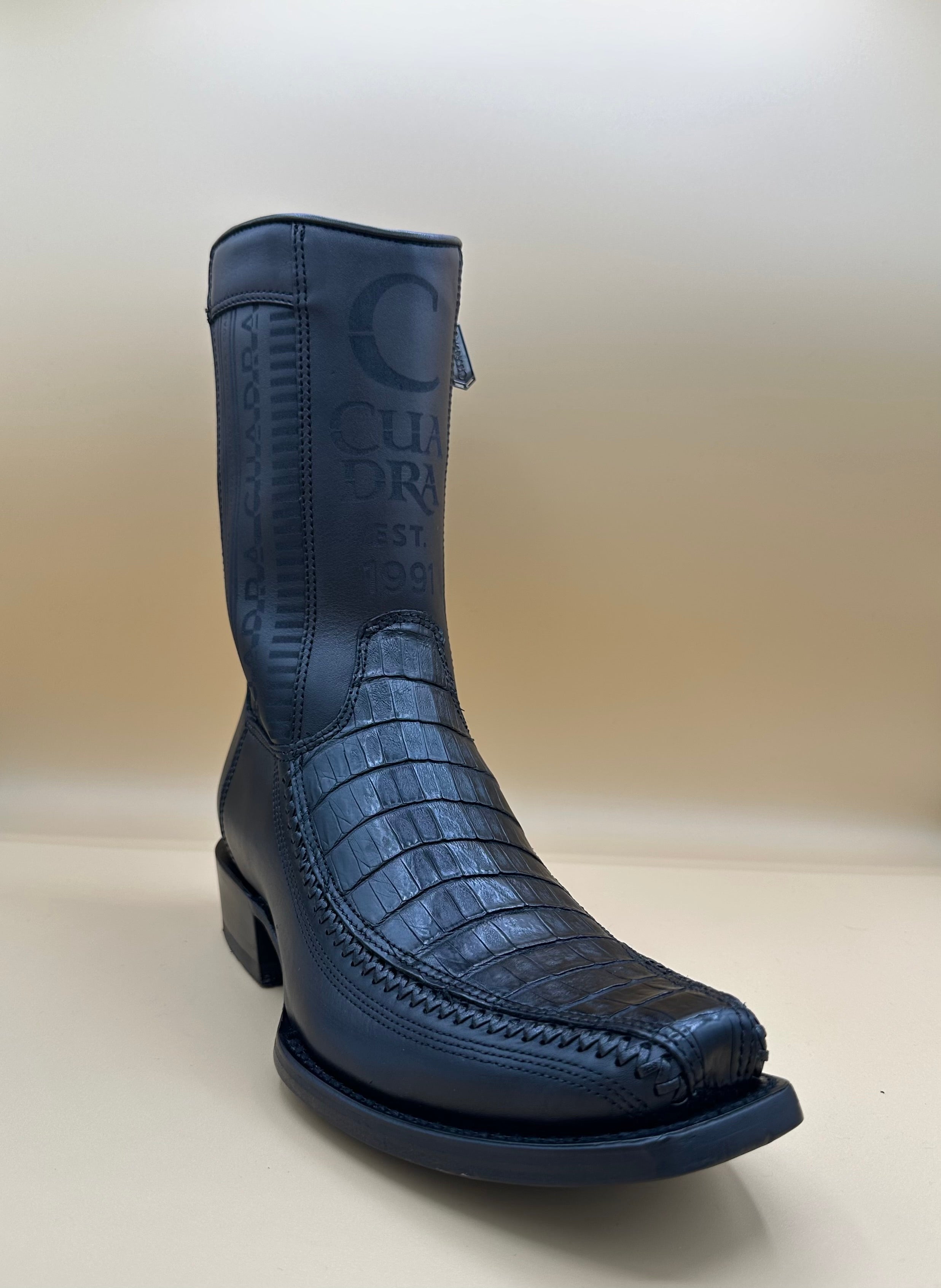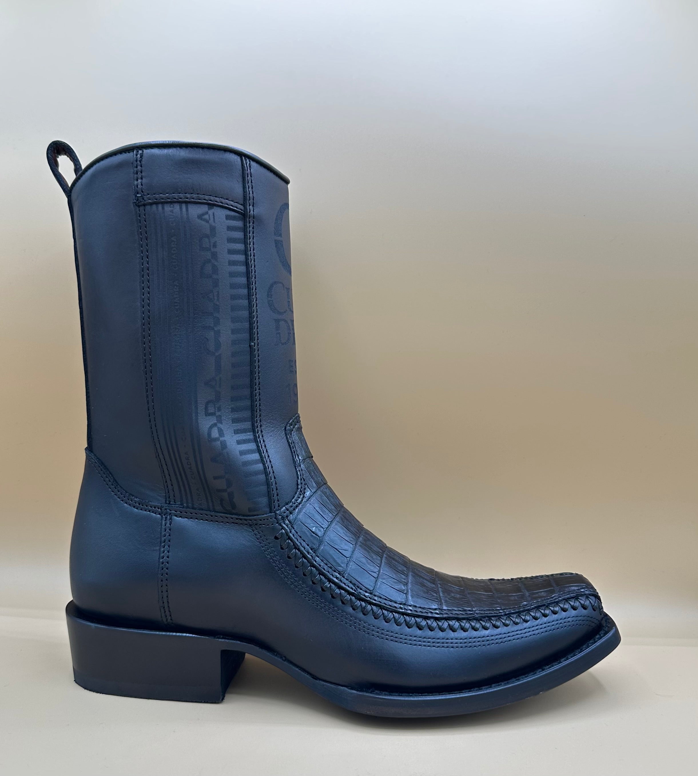 Cuadra Men's Plunge Black Caiman Laser & Woven Narrow Square Toe