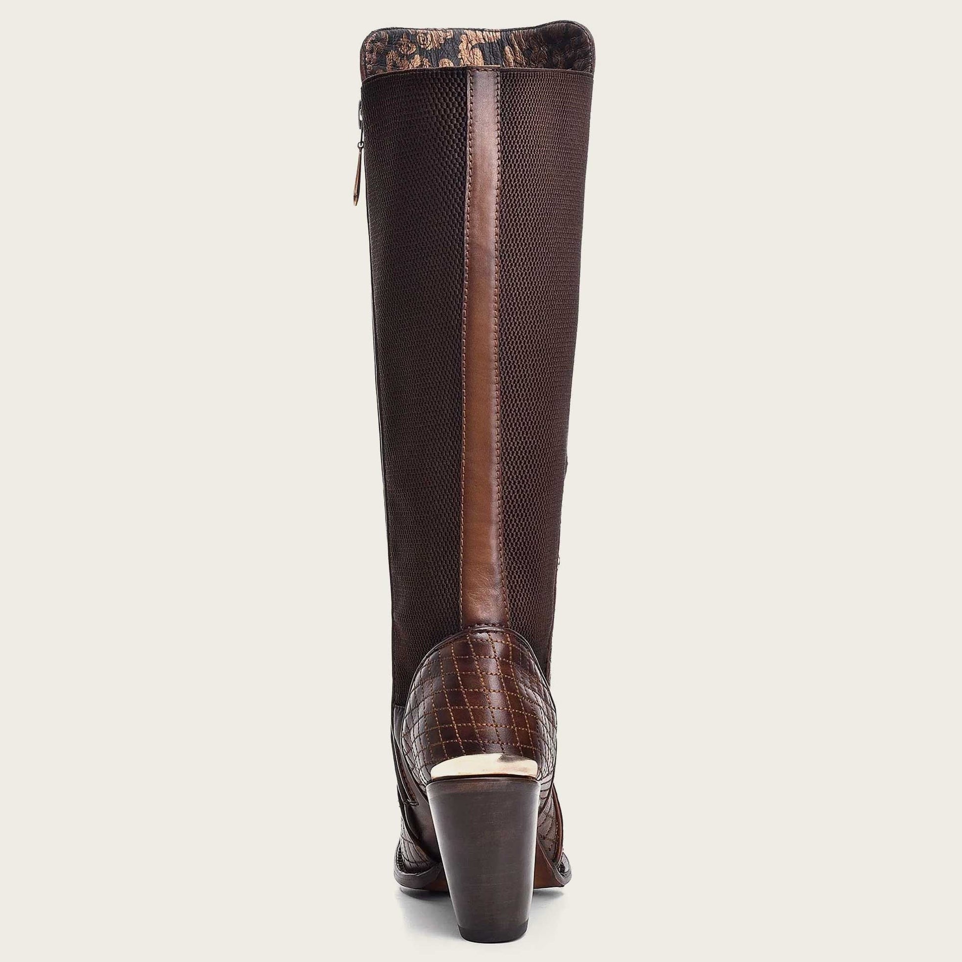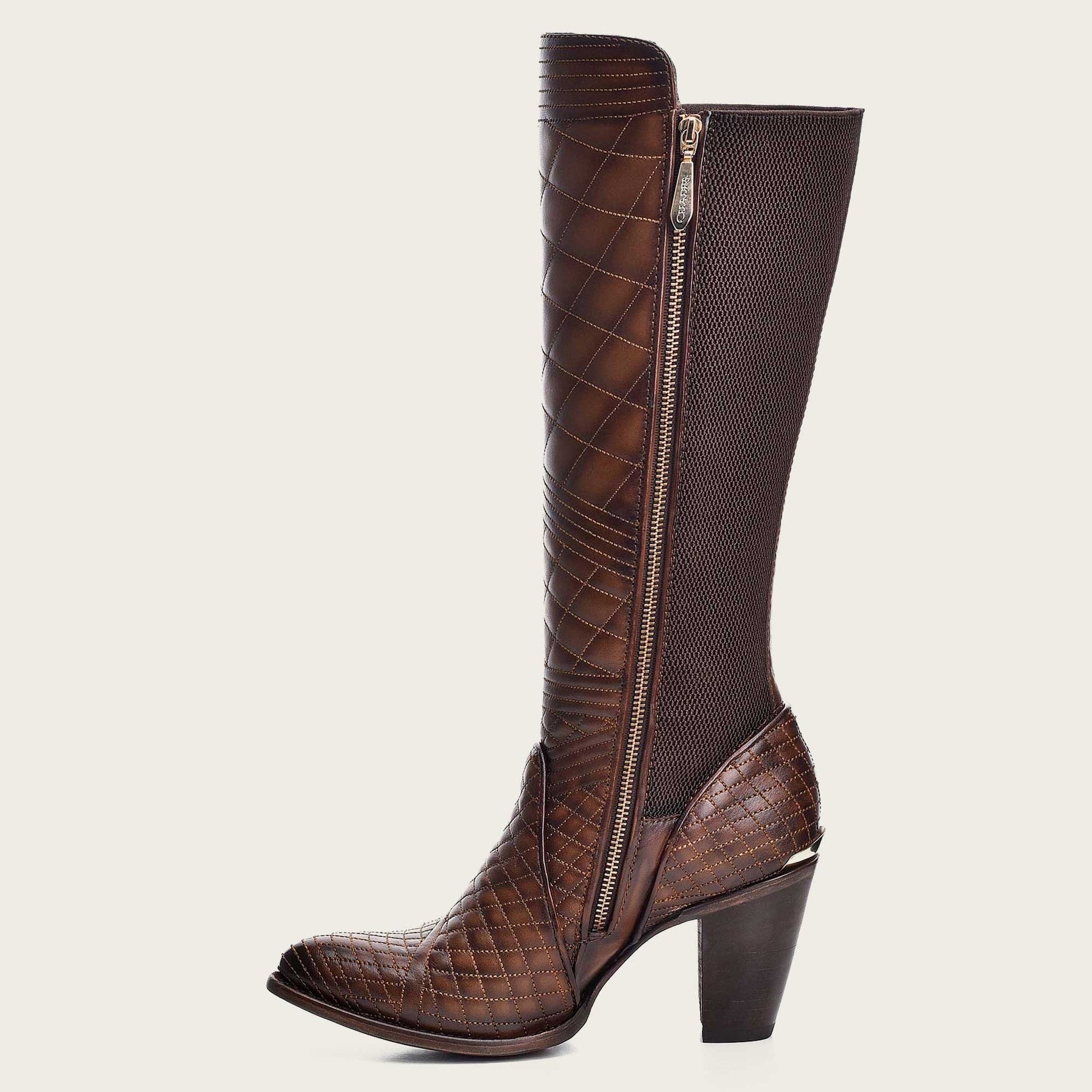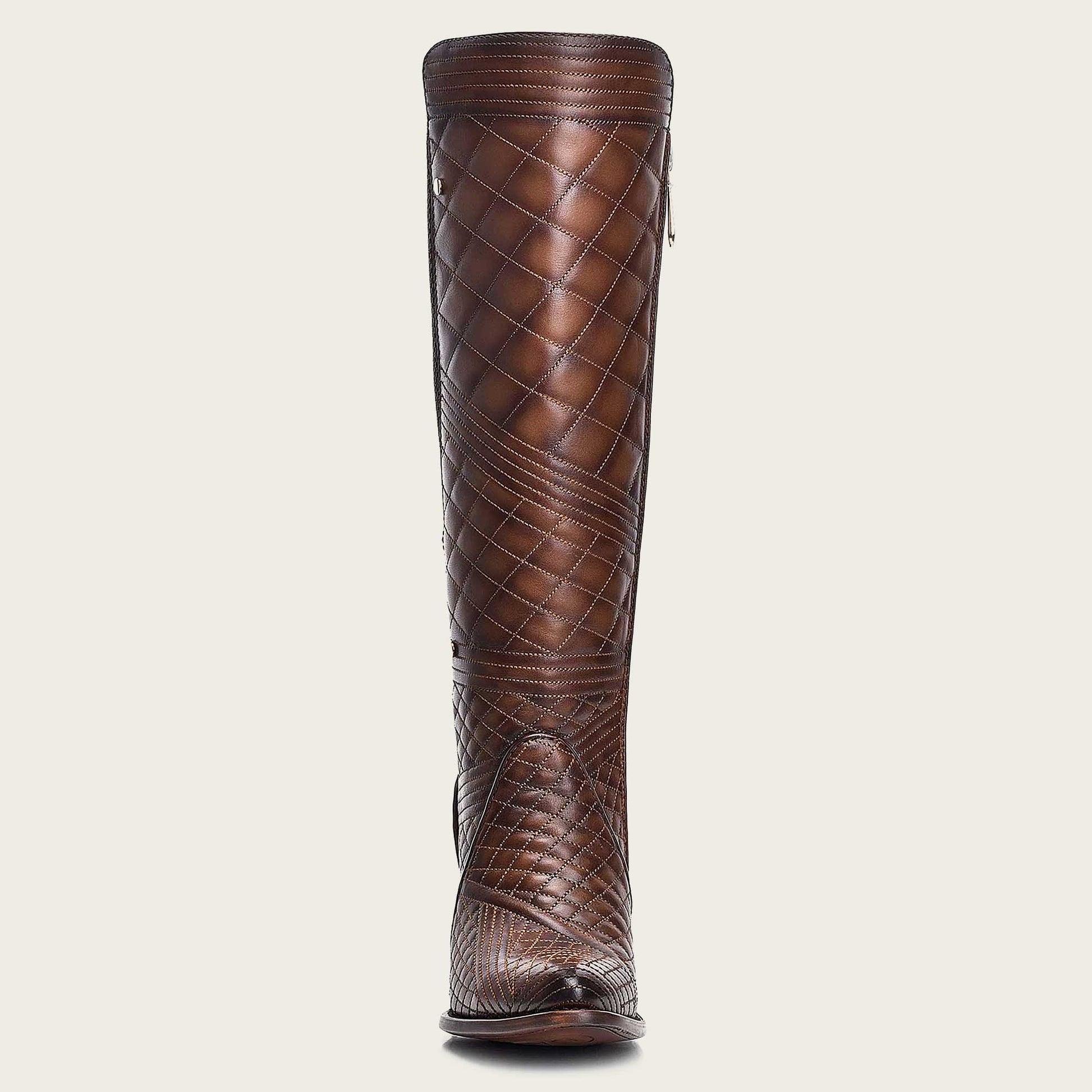 Elevate your shoe game with the stunning Hand-Painted Tall Boots for women, crafted from premium bovine leather. These remarkable boots feature an intricate padded design, accented with subtle metallic detailing. So, this are the boots to infuse sophistication and style into your versatile shoe collection.