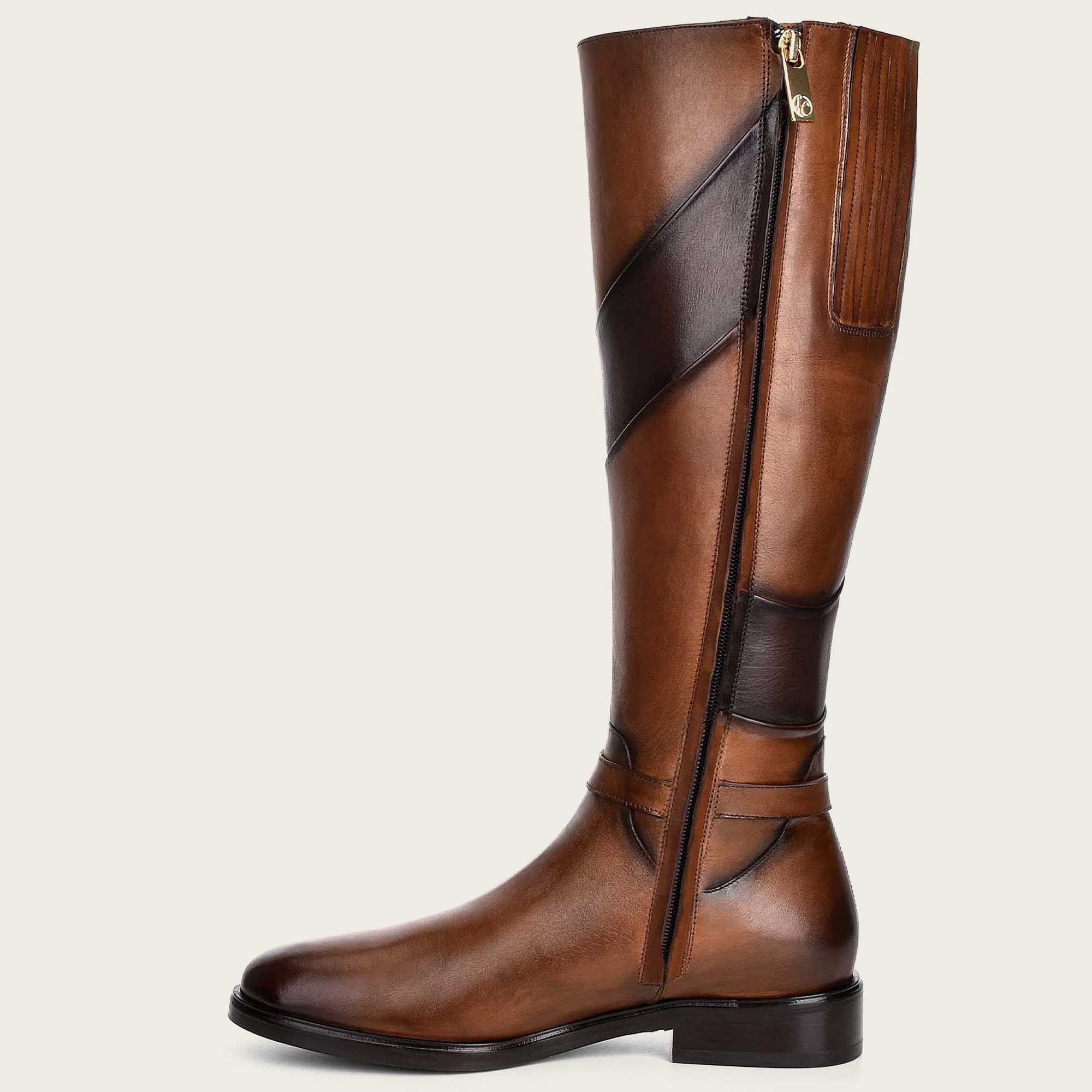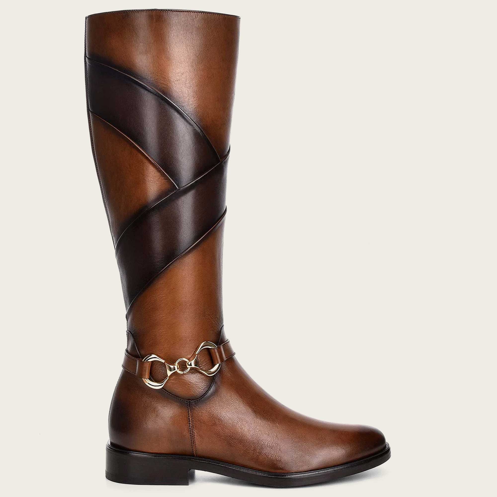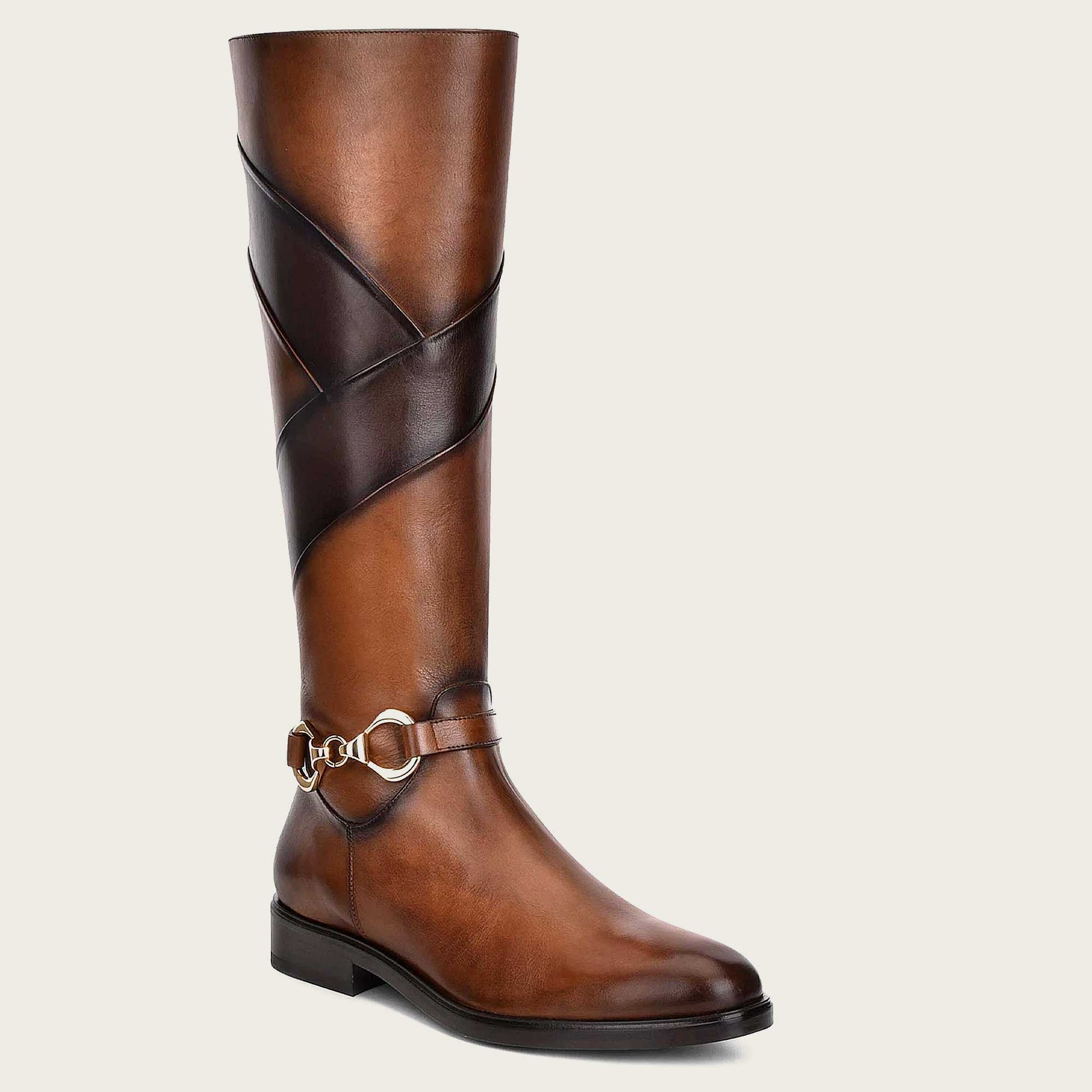 Elevate your style with these exceptional honey leather riding boots for women, crafted from premium bovine leather. These boots offer a perfect blend of unique aesthetics and reliable functionality that will set you apart in any setting.
