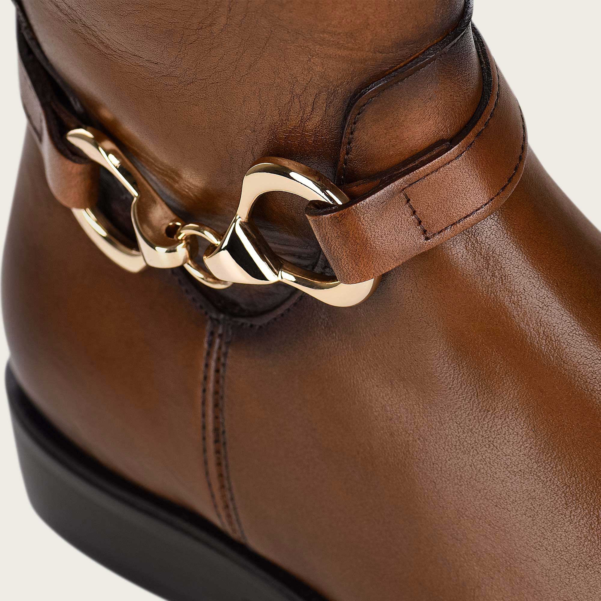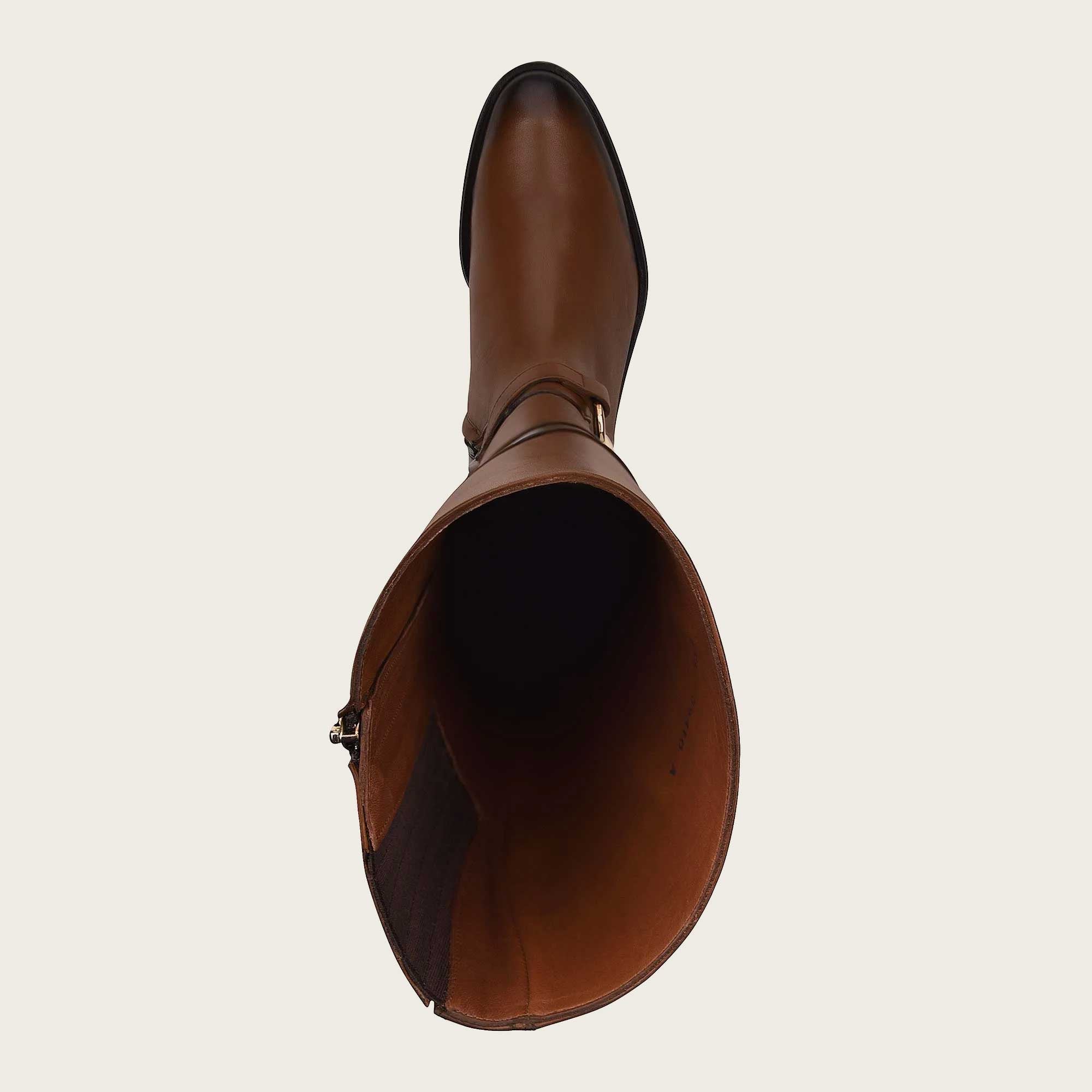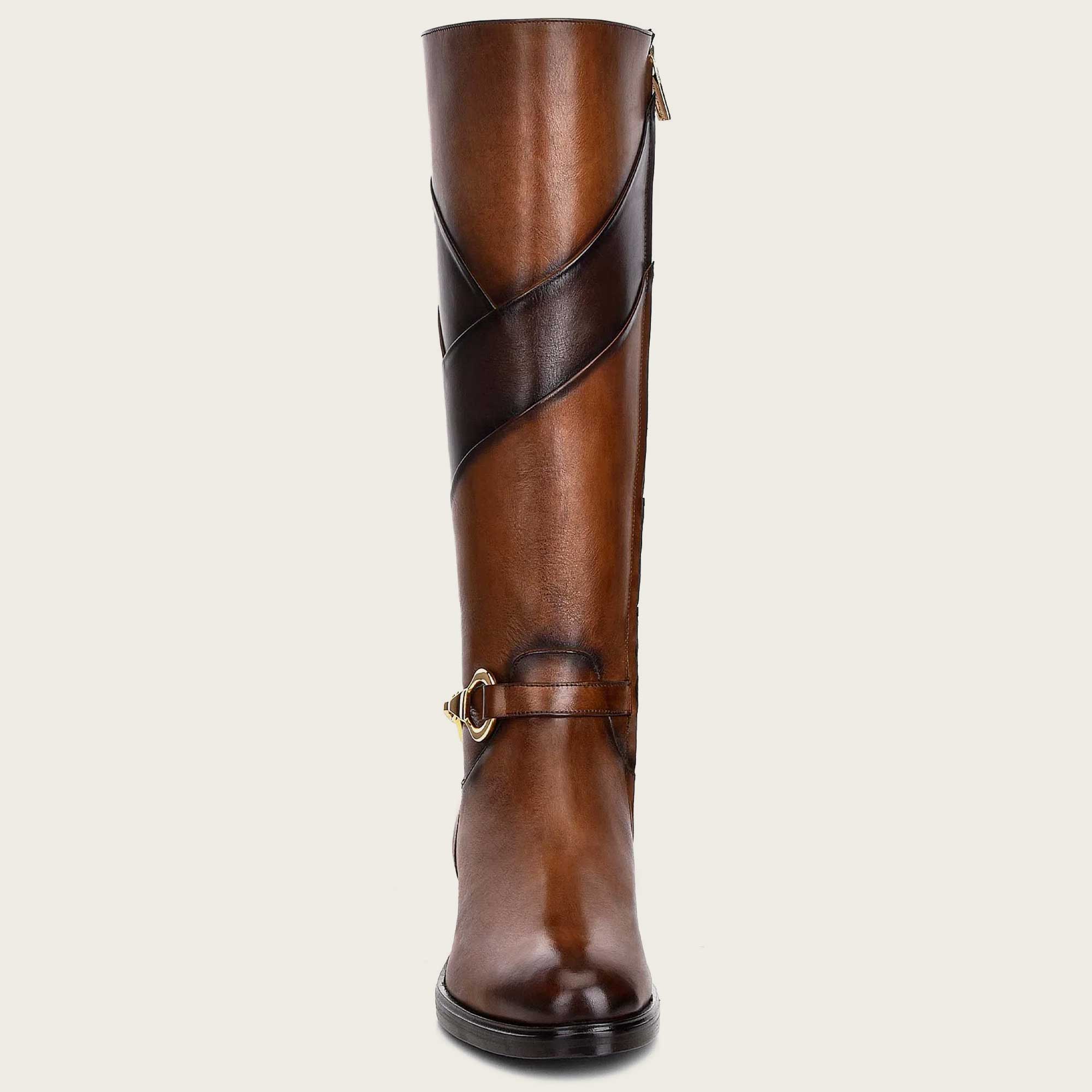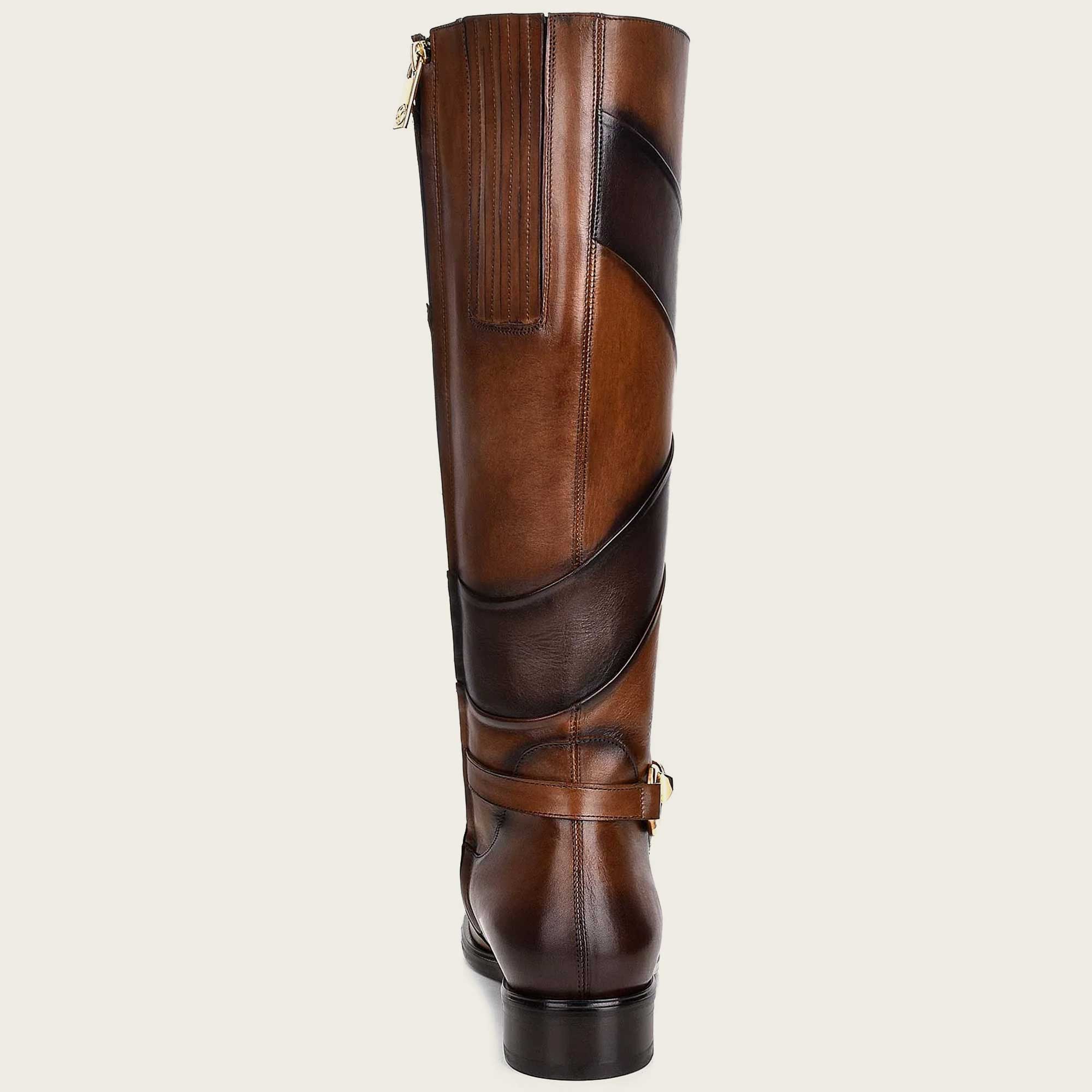 Elevate your style with these exceptional honey leather riding boots for women, crafted from premium bovine leather. These boots offer a perfect blend of unique aesthetics and reliable functionality that will set you apart in any setting.
